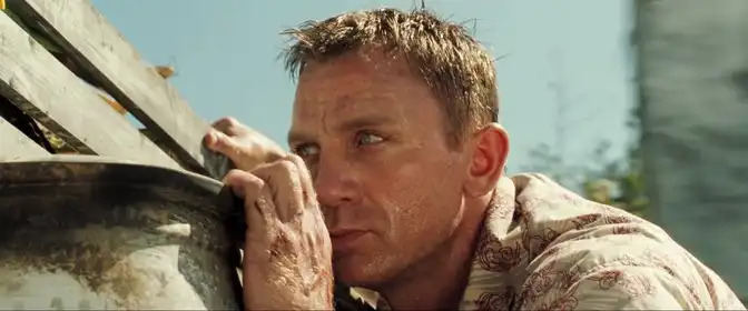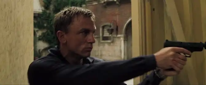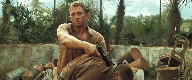 Начало картины показывает черно‑белую предисторию: молодой агент выполняет задания, за которые ему присваивают статус «00», дающий право на «убийство по приказу». Этот отрывок служит контрастом к основному повествованию, подчеркивая, что перед нами не бездушный мегакомпьютер боевых сцен, а человек, прошедший через реалии и насилие. Первый масштабный эпизод в Мадагаскаре демонстрирует новую, более агрессивную и физически подготовленную версию Бонда в исполнении Дэниела Крейга. Он стремителен, хладнокровен, но при этом видно, как он учится контролировать эмоции и использовать интеллект, а не только силу.