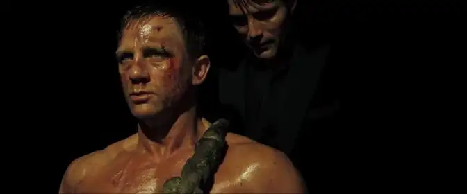 Однако настоящий драматизм наступает после покера. Лё Шиффр, не смирившись с поражением, берет Веспер в заложники и подвергает Бонда жестоким пыткам в попытке выбить информацию о месте хранения денег. Сцена пыток — одна из наиболее эмоционально тяжелых в фильме: Бонд демонстрирует невероятную стойкость, но тут же видим, как его человеческая сторона страдает. Спасение приходит неожиданно: Лё Шиффр сам оказывается убит неизвестным стрелком в том же помещении, и выясняется, что за организацией, угрожающей Лё Шиффру, стоит нечто более крупное и скрытное. Именно в этот момент на сцене появляется фигура мистера Уайта, намекающая на существование мощной криминальной сети, с которой Бонд будет иметь дело и в следующих частях.