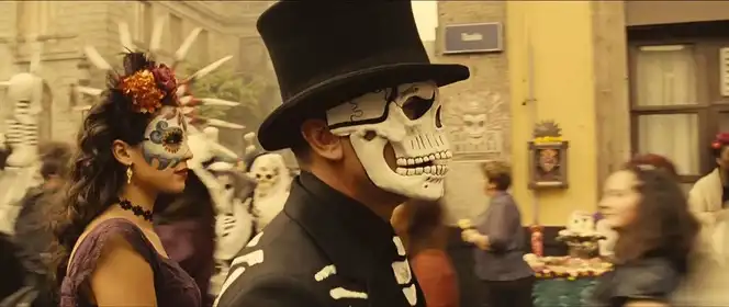 Фильм открывается динамичной, стилизованной сценой на празднике День мертвых в Мехико. Эта постановочная и эффектная последовательность не только задает тон всей картине, но и служит началом цепи событий: Бонд устраняет одного из лидеров преступной сети, что приводит его к следу, впоследствии связывающему все нитки сюжета. После погони по крышам и сложной перестрелки в трамвае он сталкивается с молодой женщиной по имени Мадлен Суонн. Их первая встреча, наполненная напряжением и загадкой, станет центральной любовной линией фильма и отправной точкой для персональных откровений Бонда.