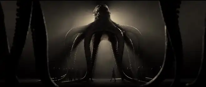 Образ организации с её эмблемой — щупальца октавного типа, охватывающие мир — прекрасно визуализирует идею паразитического влияния. Осьминогоподобный символ неслучаен: он говорит о способности сети проникать в самые разные структуры, обвивать и удерживать, лишать автономии. Эта визуальная метафора перекликается с идеей глобального картеля, чьи «щупальца» пронизывают политические, финансовые и криминальные институты. Благодаря такому символу простой злодей превращается в структуру, в систему, а зритель получает наглядный образ угрозы, лишённой человеческого лица, но обладающей планомерной логикой.